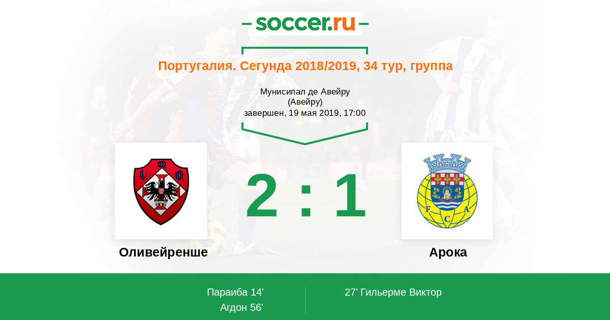 Протокол матча Оливейренше против Арока