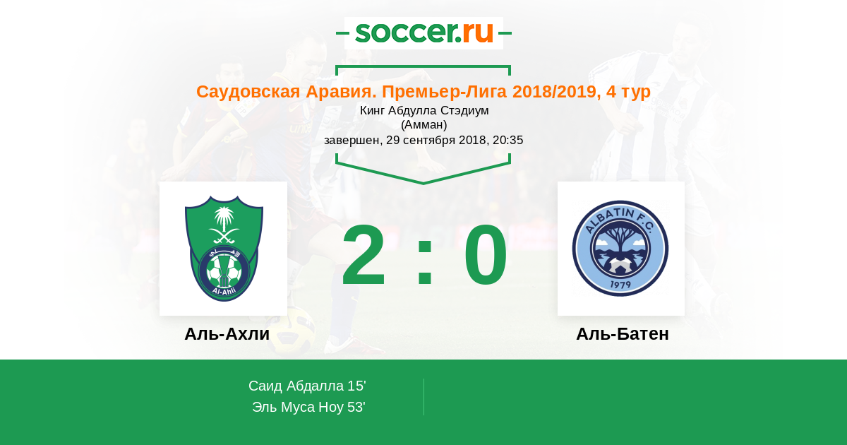 Протокол матча Аль-Ахли против Аль-Батен