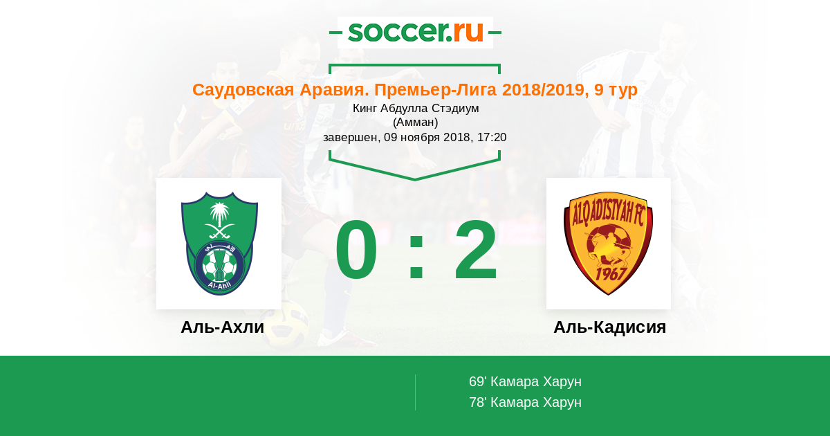 Протокол матча Аль-Ахли против Аль-Кадисия