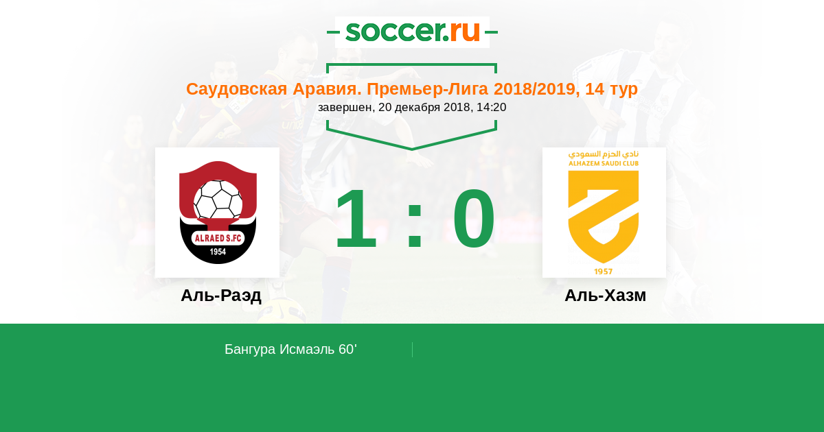 Протокол матча Аль-Раэд против Аль-Хазм