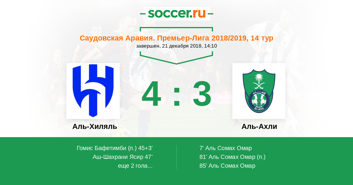 Протокол матча Аль-Хиляль против Аль-Ахли