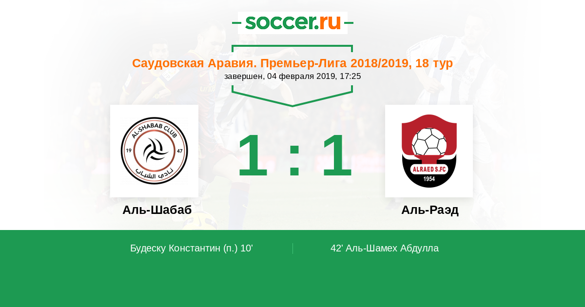 Протокол матча Аль-Шабаб против Аль-Раэд