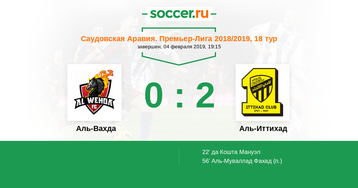 Протокол матча Аль-Вахда против Аль-Иттихад