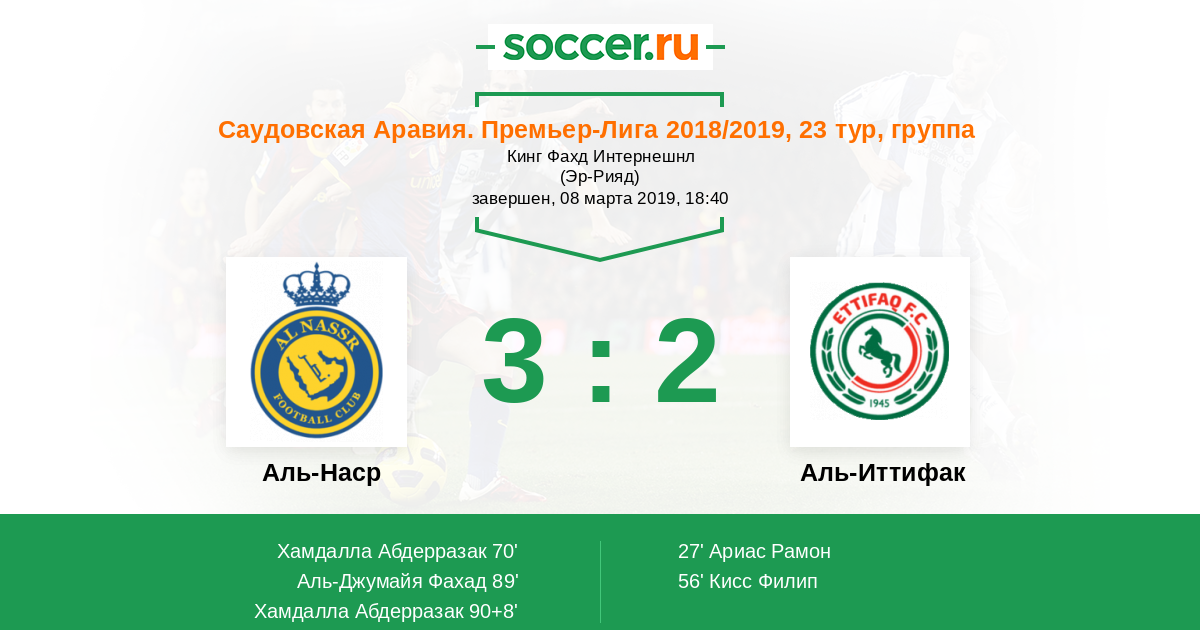 Протокол матча Аль-Наср против Аль-Иттифак