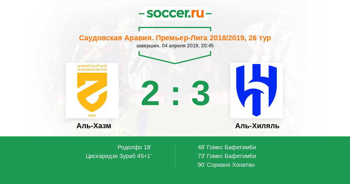 Протокол матча Аль-Хазм против Аль-Хиляль