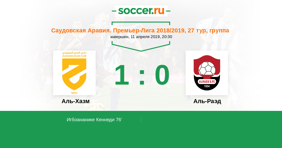 Протокол матча Аль-Хазм против Аль-Раэд