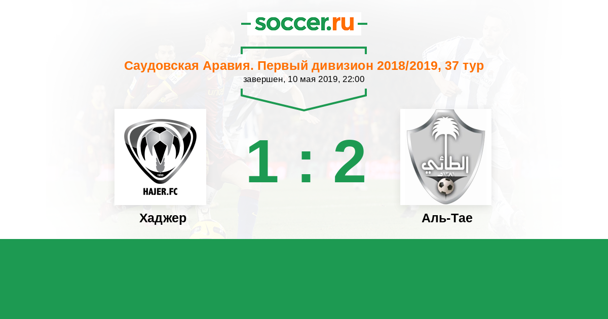 Саудовская Аравия. Первый дивизион 25.12.2018 Аль-Тае Логотип футбольный клуб Аль-Тае (Хаиль) 1:2 Логотип футбольный клуб Хаджер (Эль-Хофуф) Хаджер