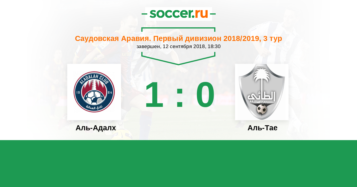 Саудовская Аравия. Первый дивизион 08.11.2020 Аль-Адалх Логотип футбольный клуб Аль-Адалх (Аль-Ахса) 3:1 Логотип футбольный клуб Аль-Тае (Хаиль) Аль-Тае