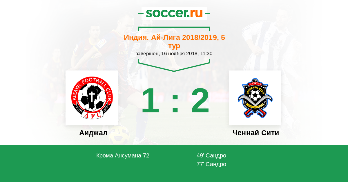 Протокол матча Аиджал против Ченнай Сити