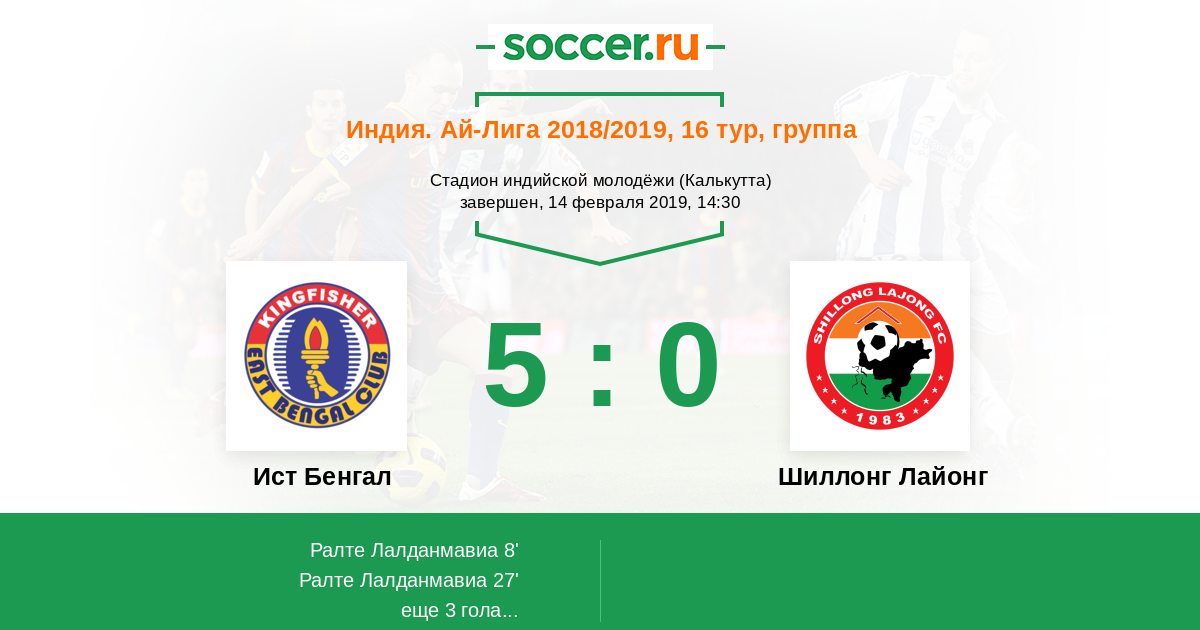 Протокол матча Ист Бенгал против Шиллонг Лайонг