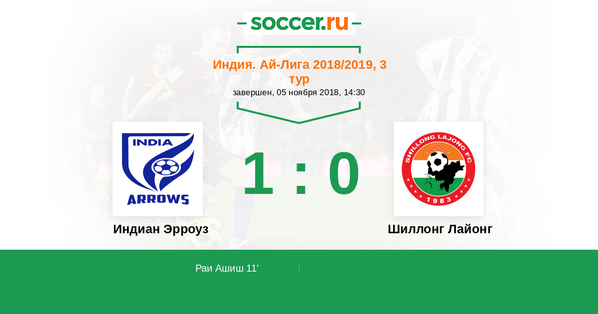 Протокол матча Индиан Эрроуз против Шиллонг Лайонг