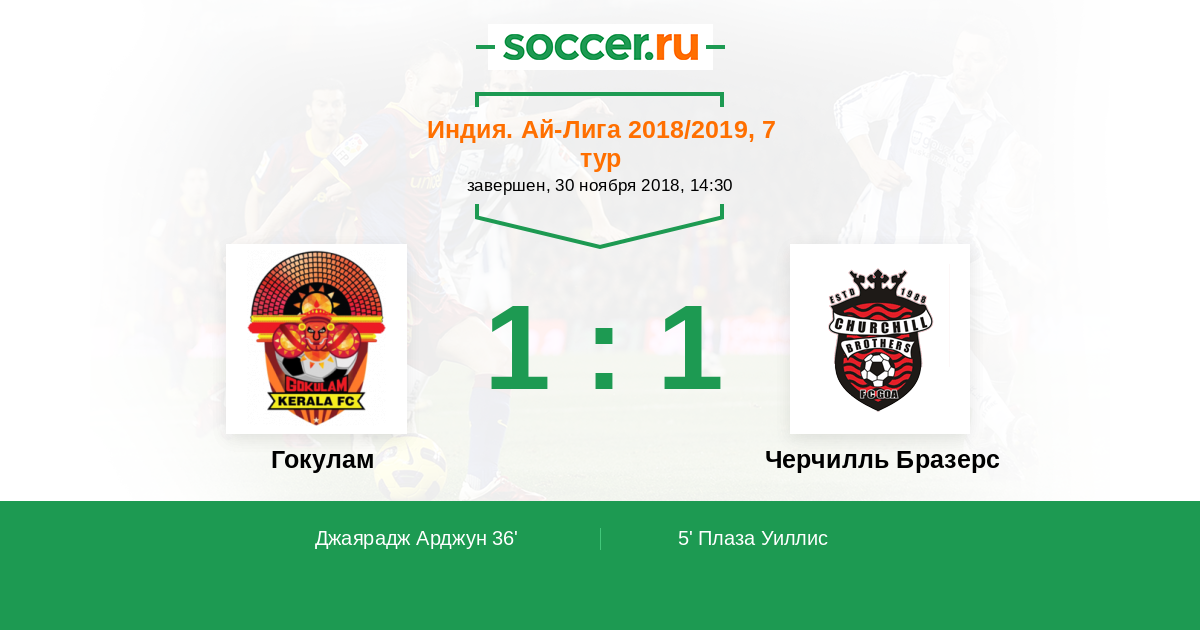 36' (1:1) Джаярадж Арджун (15) (Саба Кристиан (27))