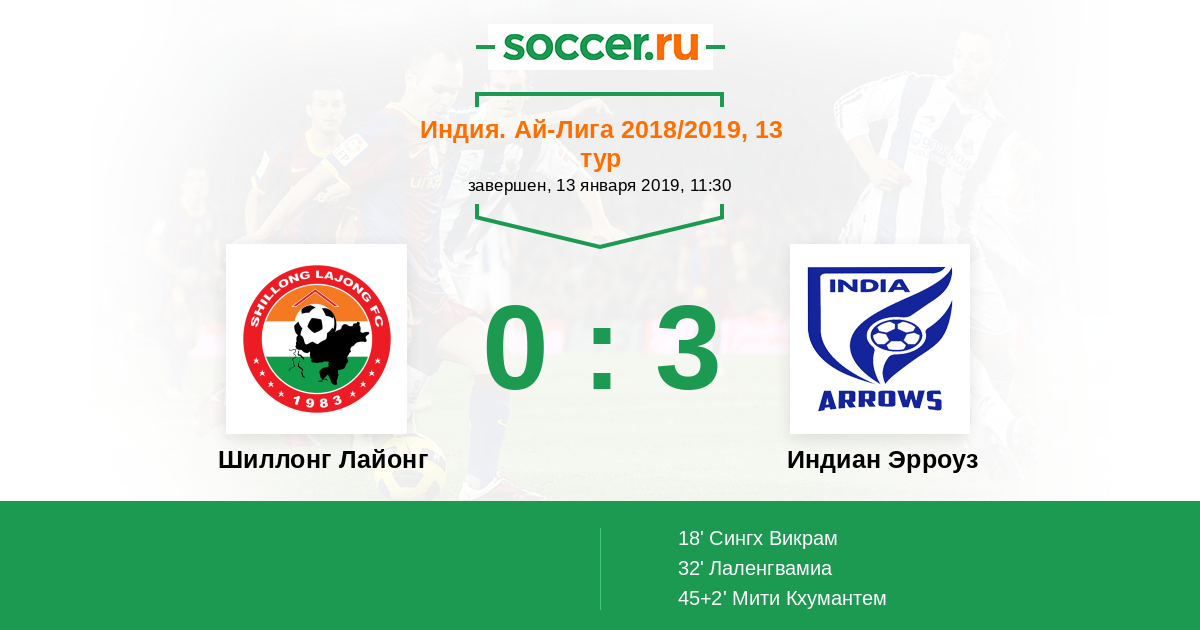 Протокол матча Шиллонг Лайонг против Индиан Эрроуз