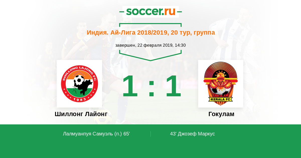 Протокол матча Шиллонг Лайонг против Гокулам