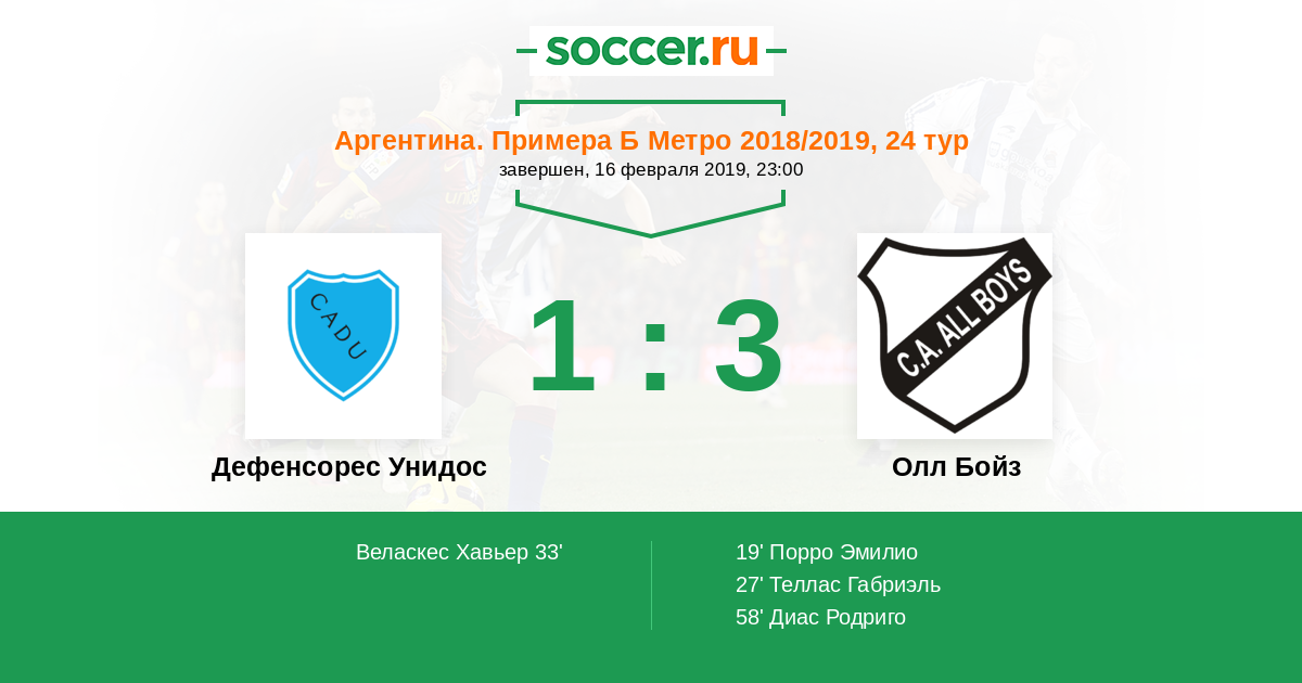 Протокол матча Дефенсорес Унидос против Олл Бойз