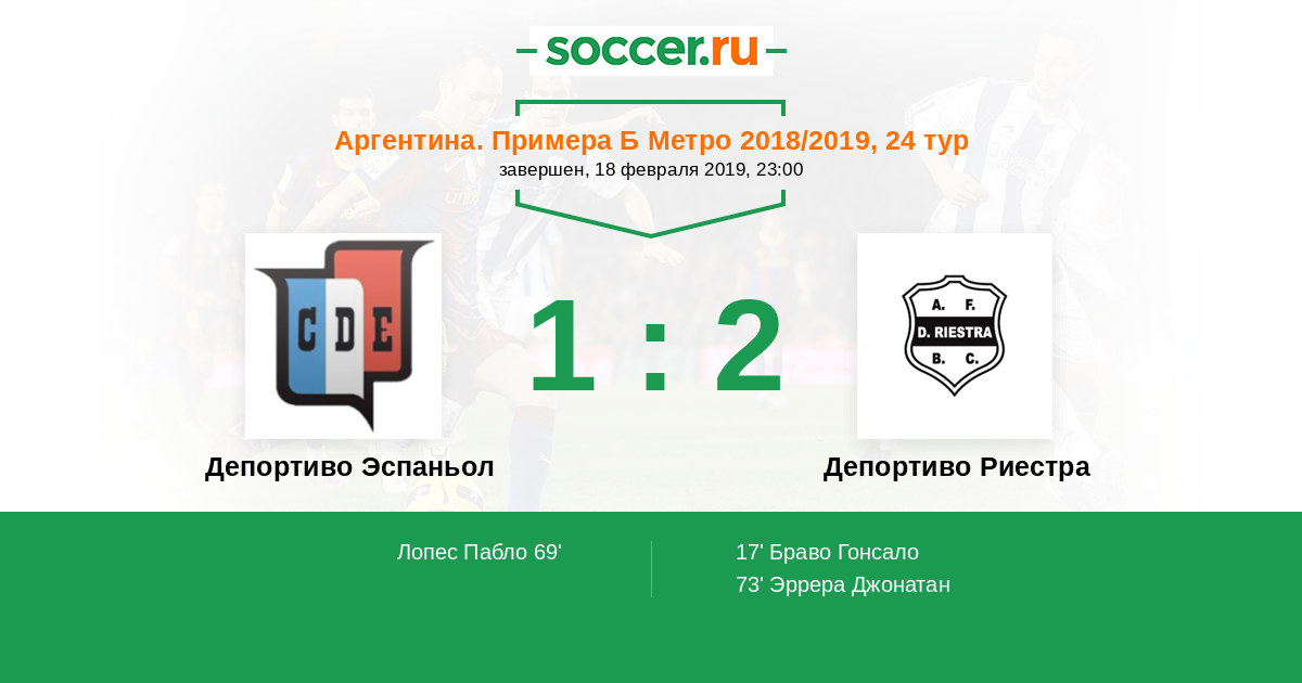 Протокол матча Депортиво Эспаньол против Депортиво Риестра