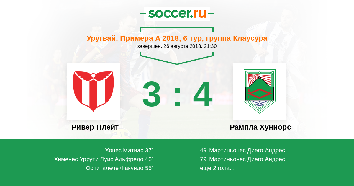 Протокол матча Ривер Плейт против Рампла Хуниорс