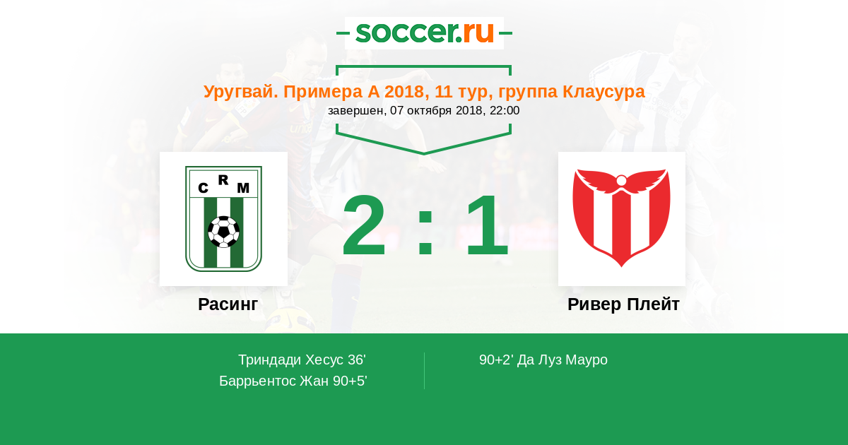 Протокол матча Расинг против Ривер Плейт
