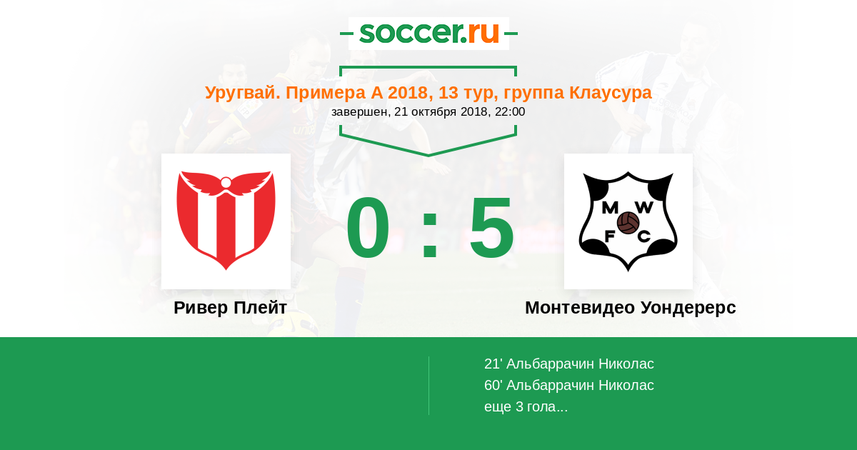 21' (0:1) Альбаррачин Николас (25)