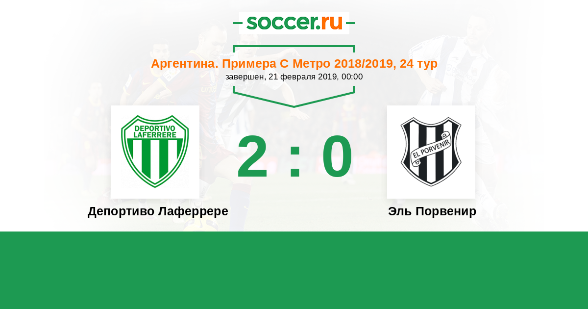 Аргентина. Примера С Метро 18.02.2020 Депортиво Лаферрере Логотип футбольный клуб Депортиво Лаферрере 2:1 Логотип футбольный клуб Эль Порвенир (Буэнос-Айрес) Эль Порвенир