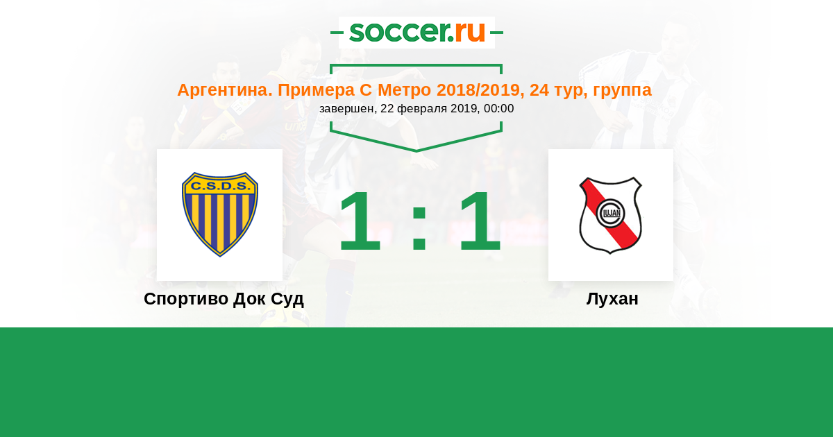 Аргентина. Примера С Метро 18.02.2018 Лухан Логотип футбольный клуб Лухан 1:0 Логотип футбольный клуб Спортиво Док Суд (Буэнос-Айрес) Спортиво Док Суд