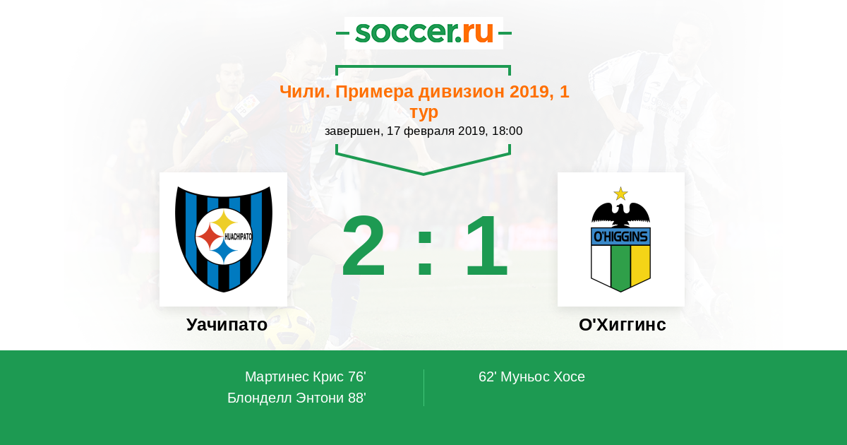 Протокол матча Уачипато против О'Хиггинс