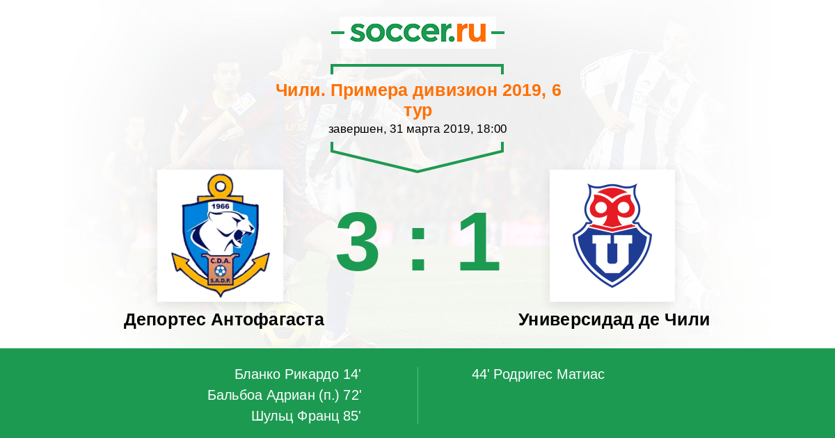 Протокол матча Депортес Антофагаста против Универсидад де Чили