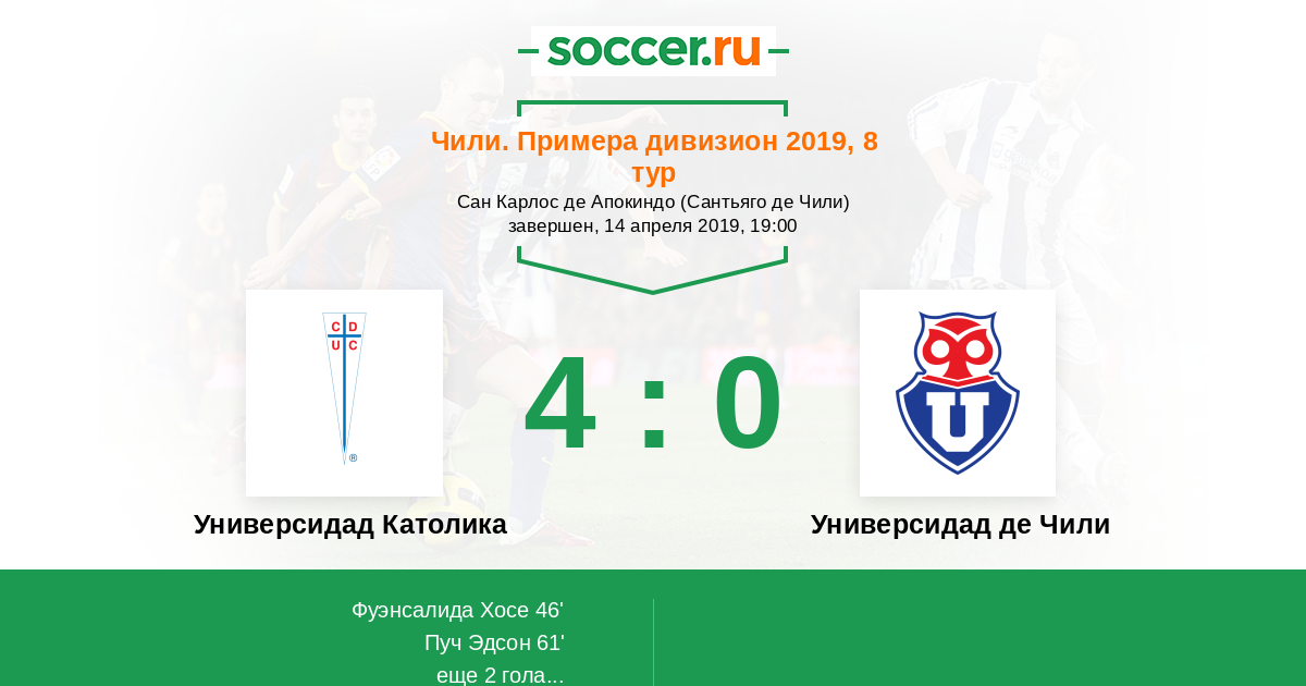 Протокол матча Универсидад Католика против Универсидад де Чили