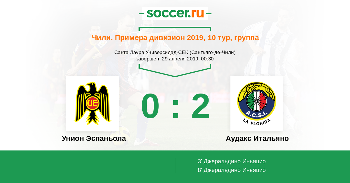 Протокол матча Унион Эспаньола против Аудакс Итальяно