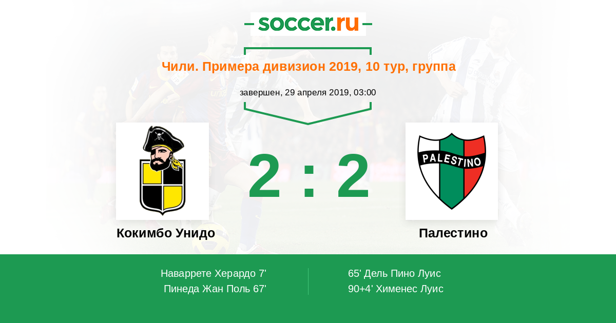 Протокол матча Кокимбо Унидо против Палестино