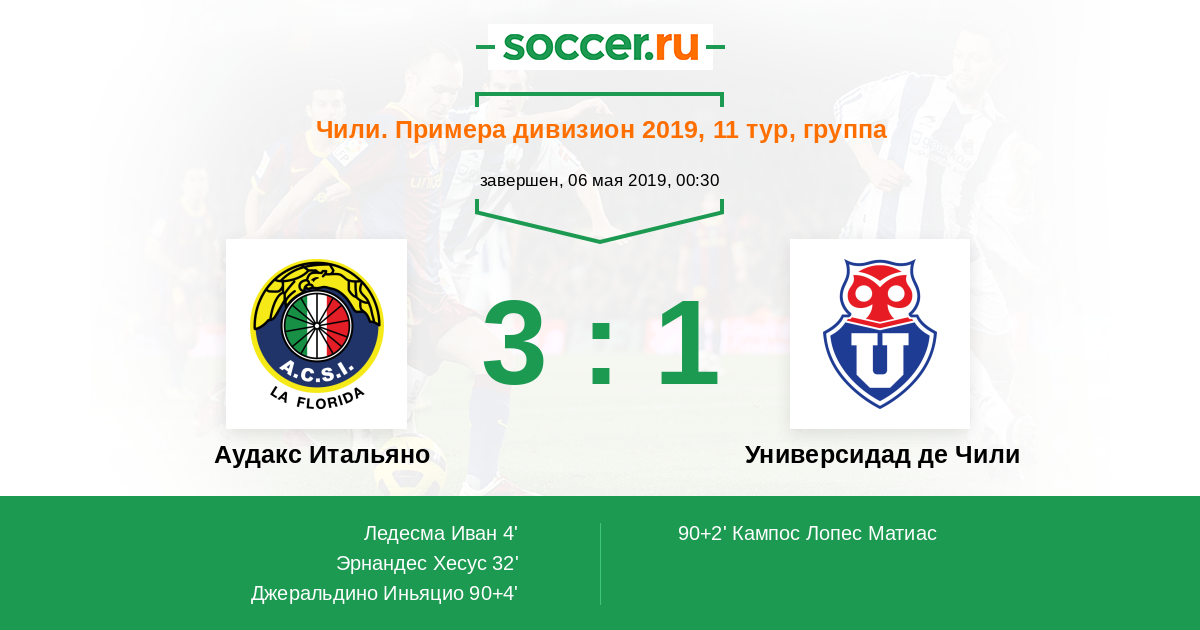 Протокол матча Аудакс Итальяно против Универсидад де Чили
