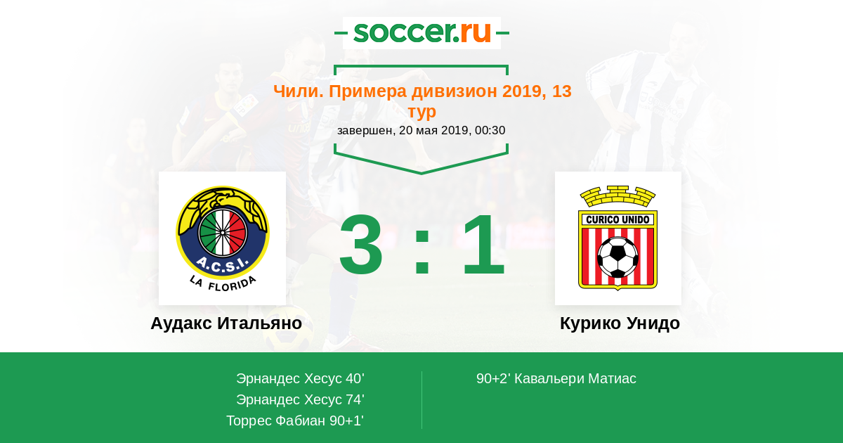 Протокол матча Аудакс Итальяно против Курико Унидо