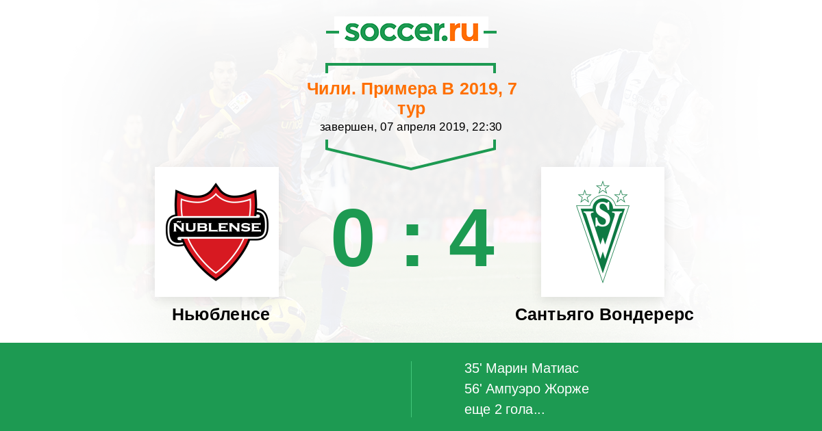Протокол матча Ньюбленсе против Сантьяго Вондерерс