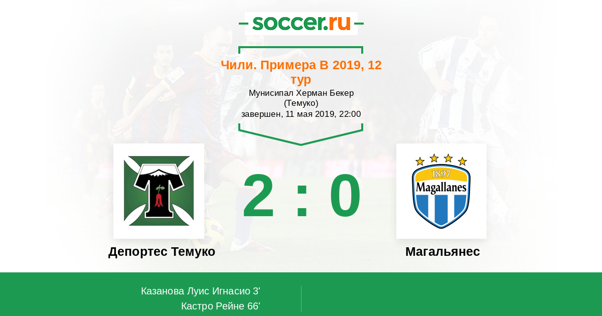 Протокол матча Депортес Темуко против Магальянес