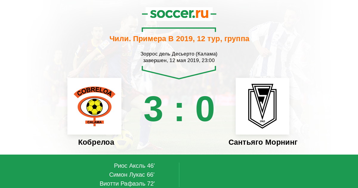 Протокол матча Кобрелоа против Сантьяго Морнинг