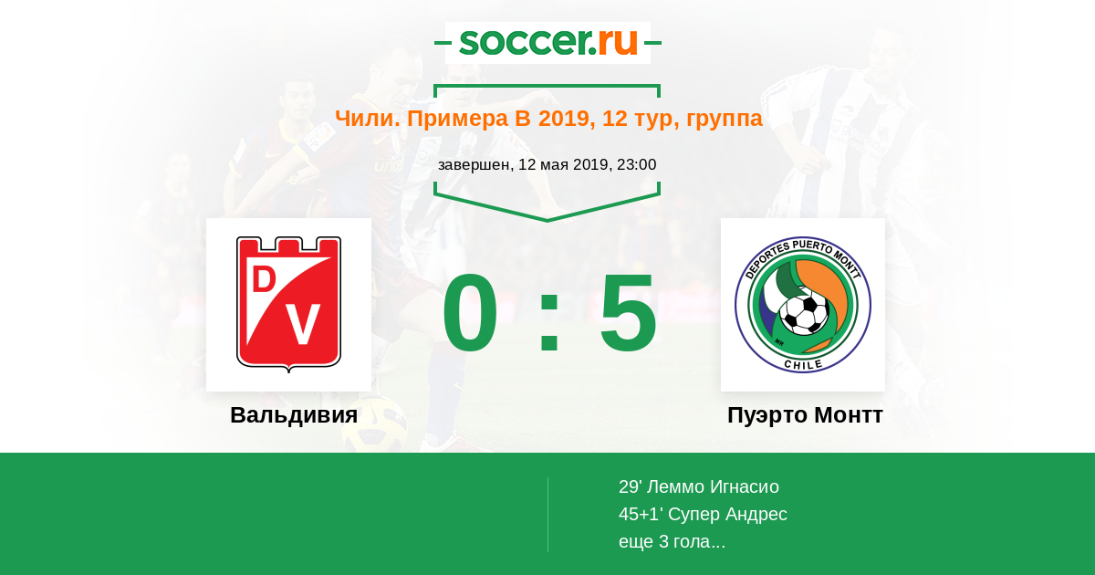 Протокол матча Вальдивия против Пуэрто Монтт
