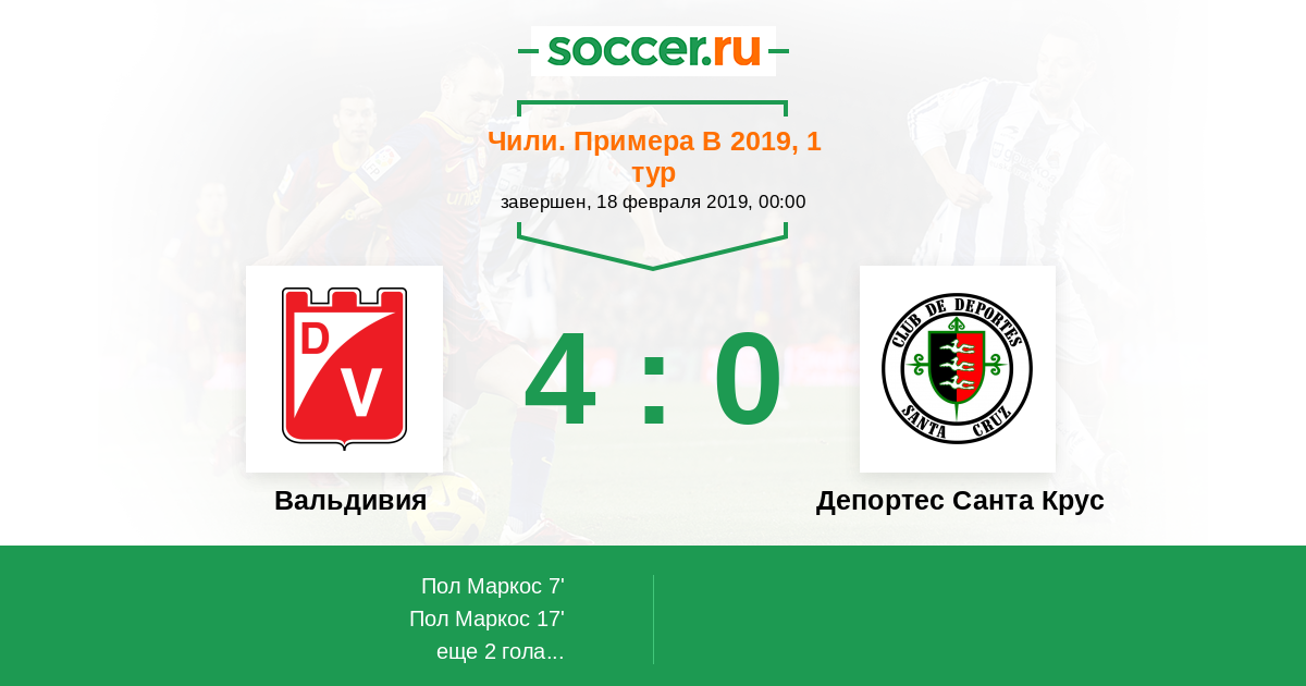 Протокол матча Вальдивия против Депортес Санта Крус