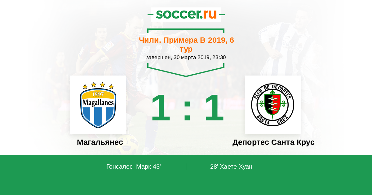 Протокол матча Магальянес против Депортес Санта Крус