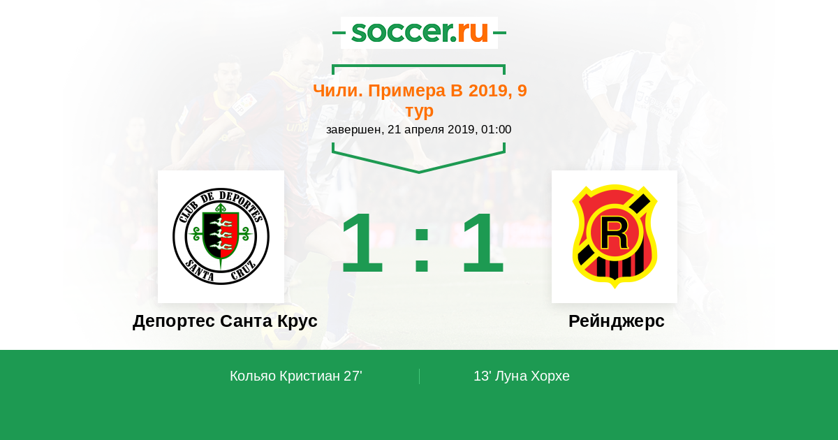 Протокол матча Депортес Санта Крус против Рейнджерс