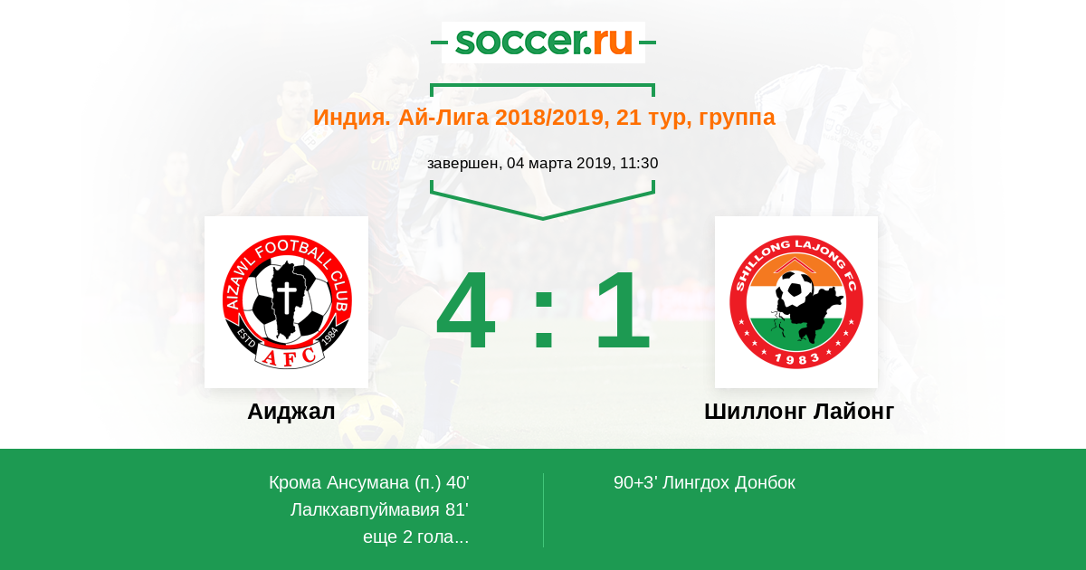 Протокол матча Аиджал против Шиллонг Лайонг