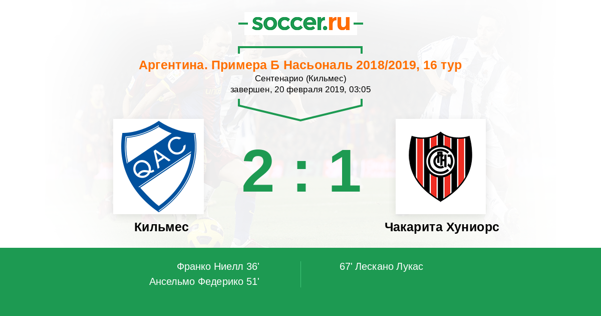 Протокол матча Кильмес против Чакарита Хуниорс