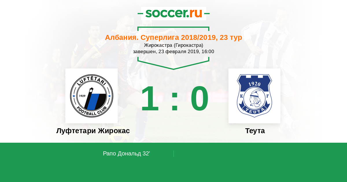 Протокол матча Луфтетари Жирокас против Теута