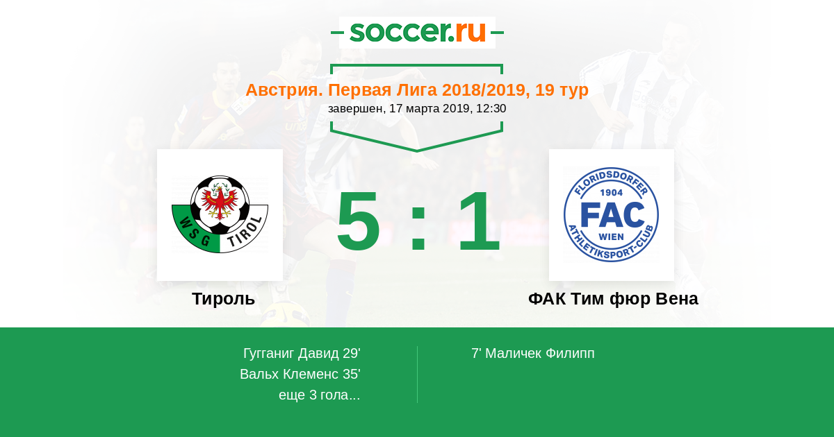 Протокол матча Тироль против ФАК Тим фюр Вена