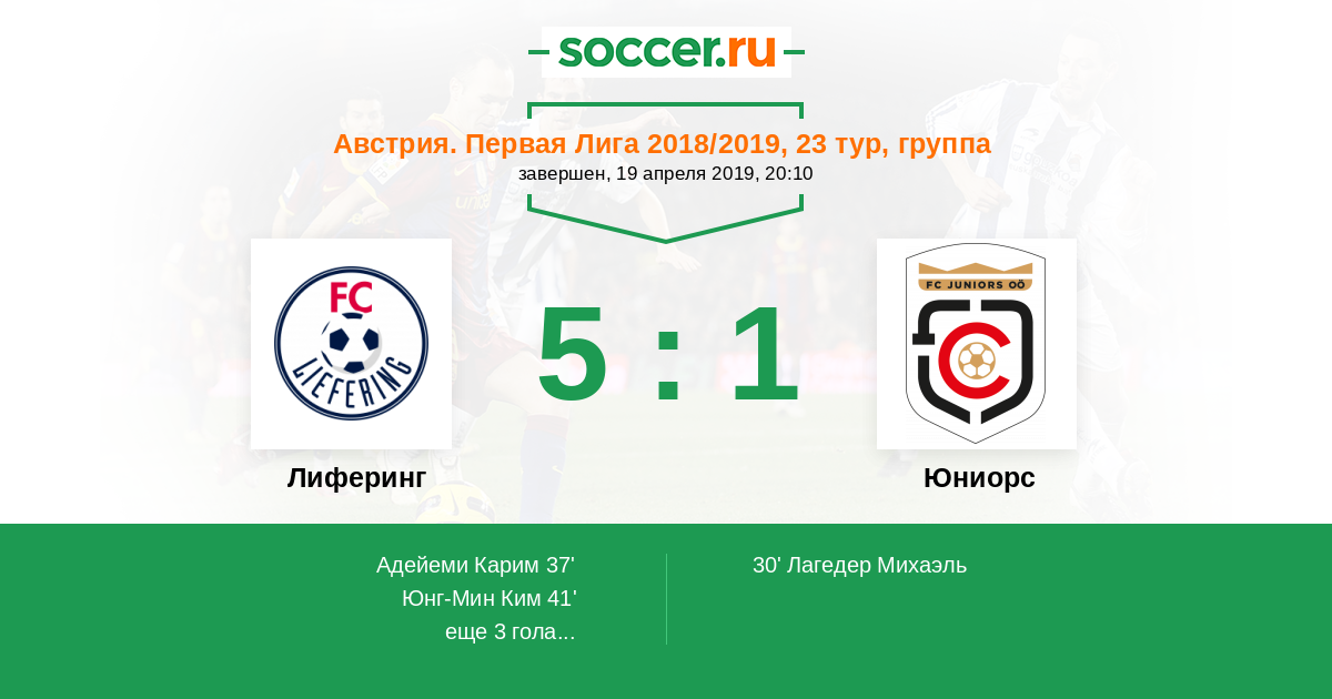 Протокол матча Лиферинг против Юниорс