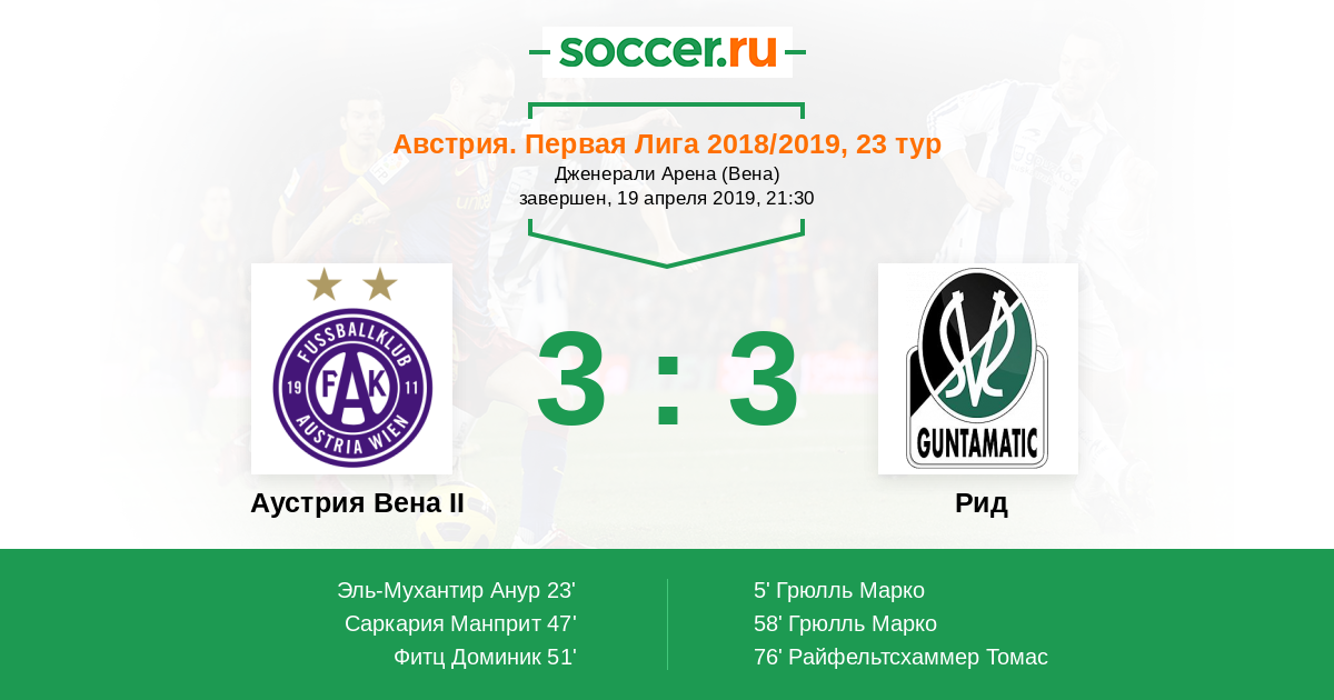 Протокол матча Аустрия Вена II против Рид