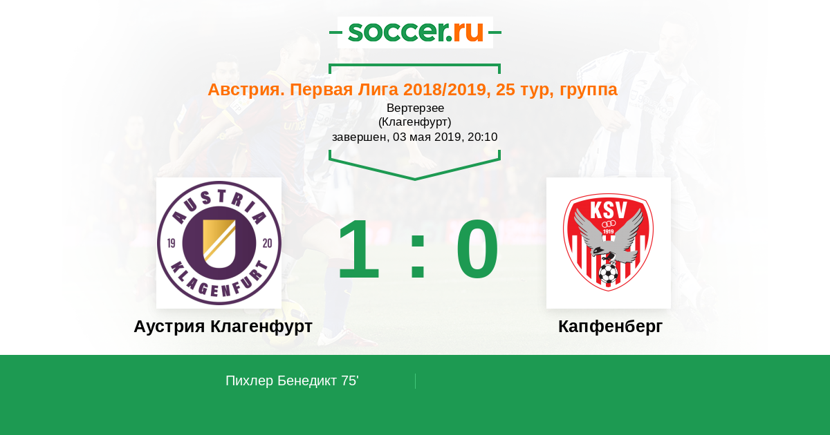 Протокол матча Аустрия Клагенфурт против Капфенберг