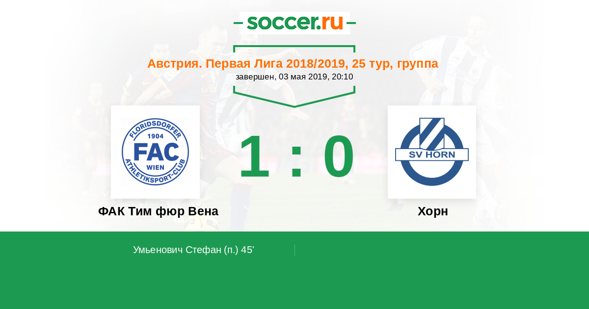 Протокол матча ФАК Тим фюр Вена против Хорн