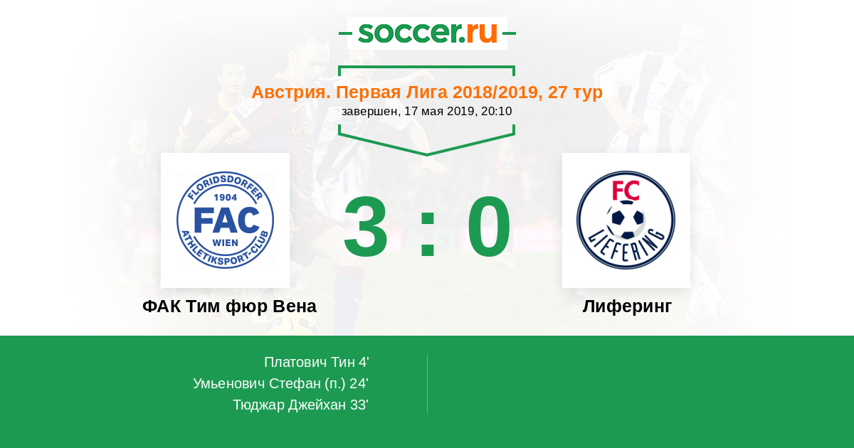Протокол матча ФАК Тим фюр Вена против Лиферинг