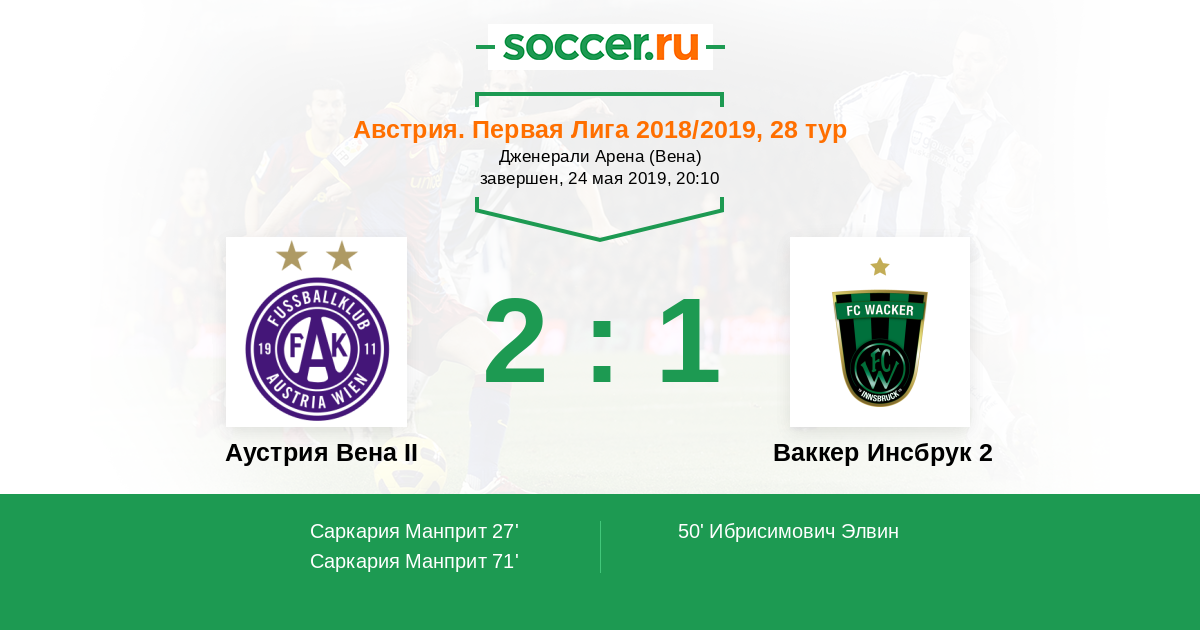 Протокол матча Аустрия Вена II против Ваккер Инсбрук 2