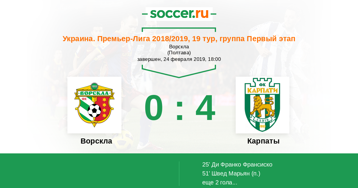 Протокол матча Ворскла против Карпаты